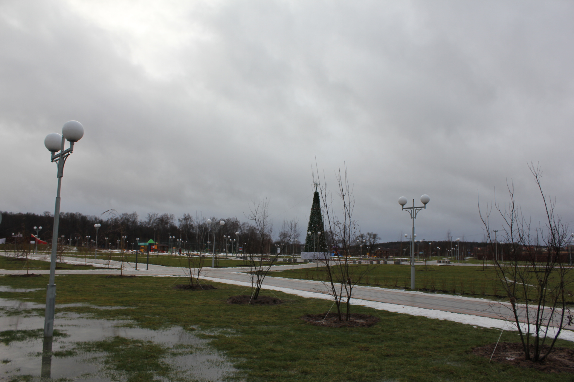 Гуляли в парке, охранник сказал планируют построить карусели и развлекательный центр, они якобы есть в плане парка. Карусели будут строить левее за футбольным полем, а развлекательный центр будет в начале парка справа.