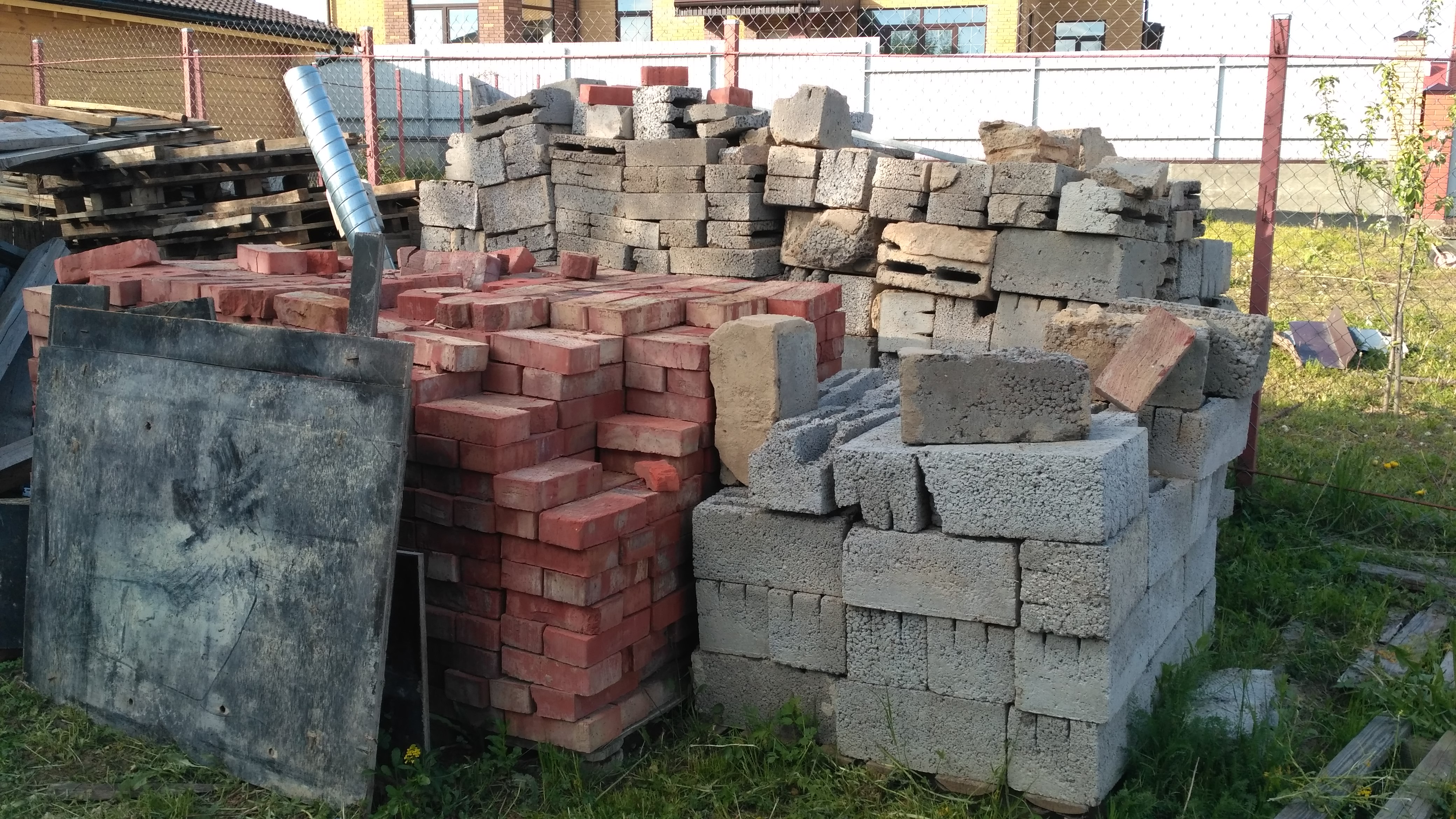 Керамзитобетонные блоки 200*200*400,вперемешку с перегородочными 200*60*400 около 4-5 м3 и кирпич 200 марки(супер) около 2.5 м3 отдам за ПОЛ ЦЕНЫ.