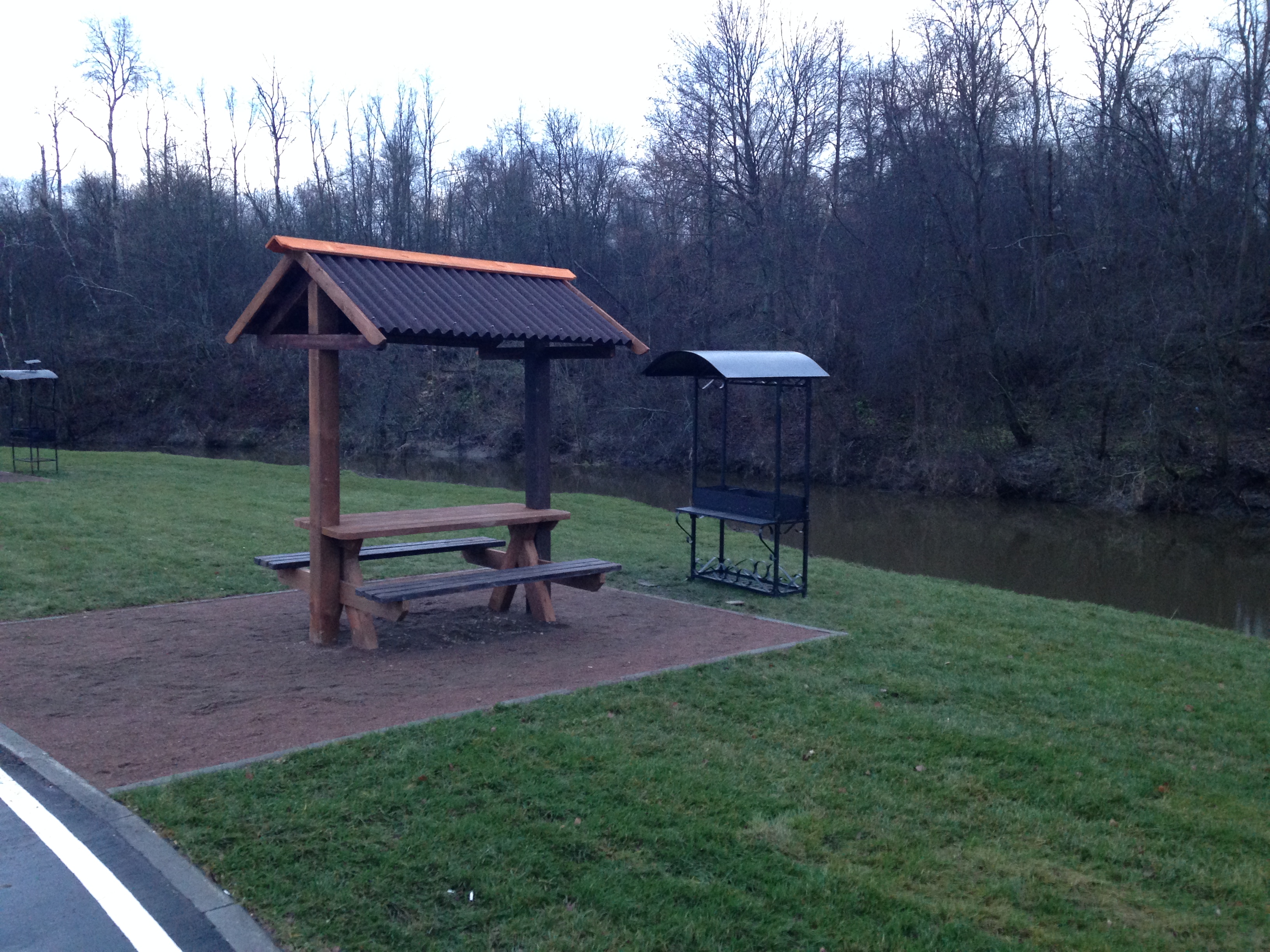 Вот такие замечательные беседки и мангальчики стоят вдоль реки. их много! места всем хватит.
