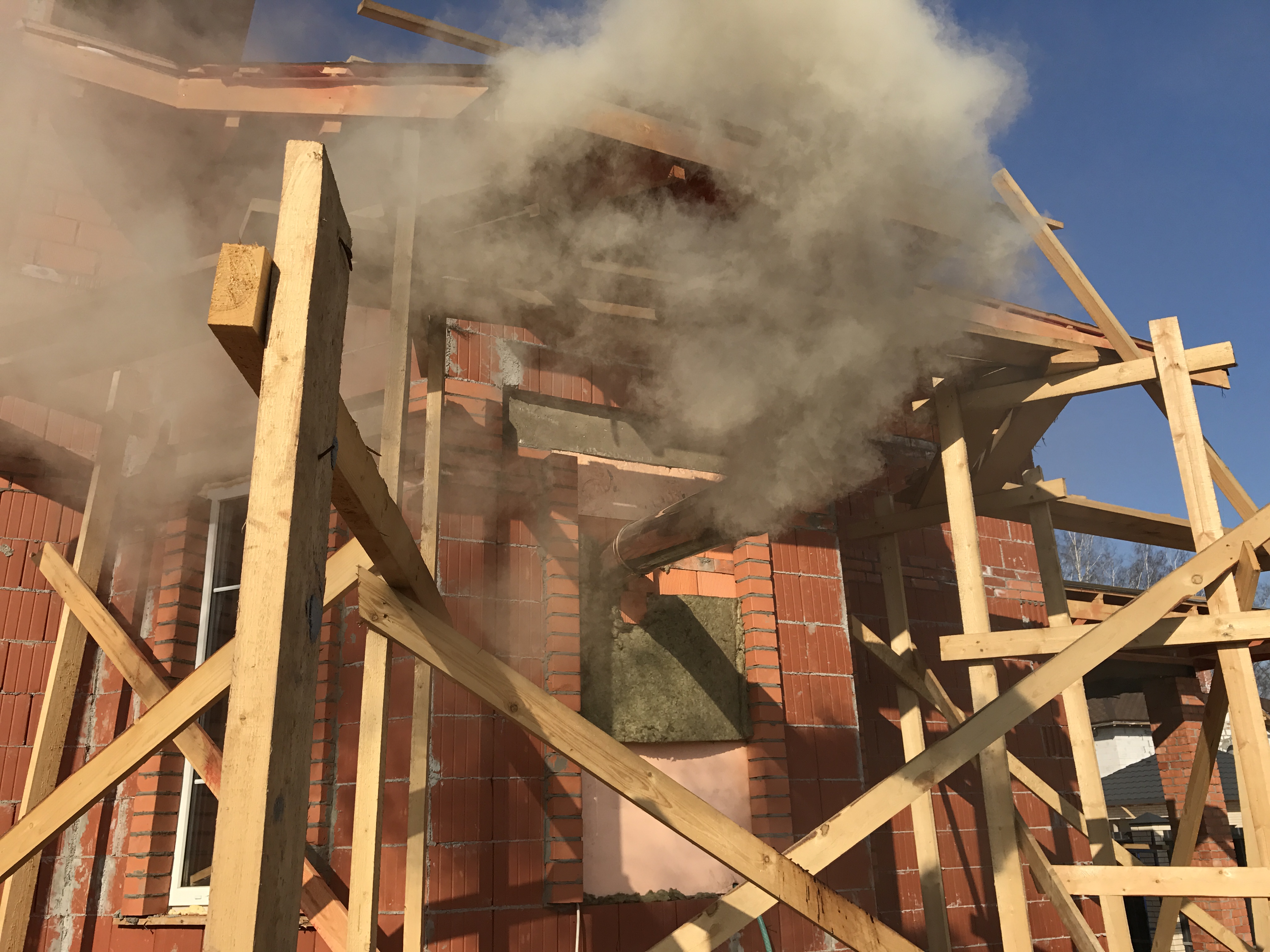 Саша, напротив вас два дома топятся буржуйками, используя ,видимо, остатки стройматериалов.