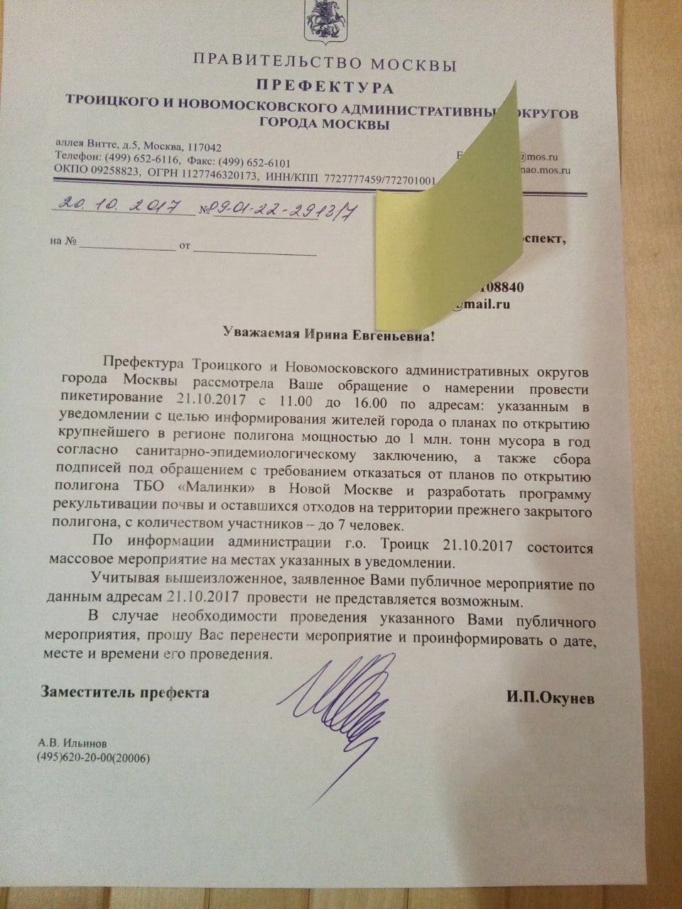 Вот ответ департамента природопользования Правительства Москвы. Похоже на обычную отписку: их спрашивают об открытии и расширении до 67 Га полигона ТБО на 7 ближайших лет с захоронением по 1 миллиону тон мусора ежегодно, а они рассказывают о том, как сейчас хорошо рекультивируют старую свалку на 10 Га.