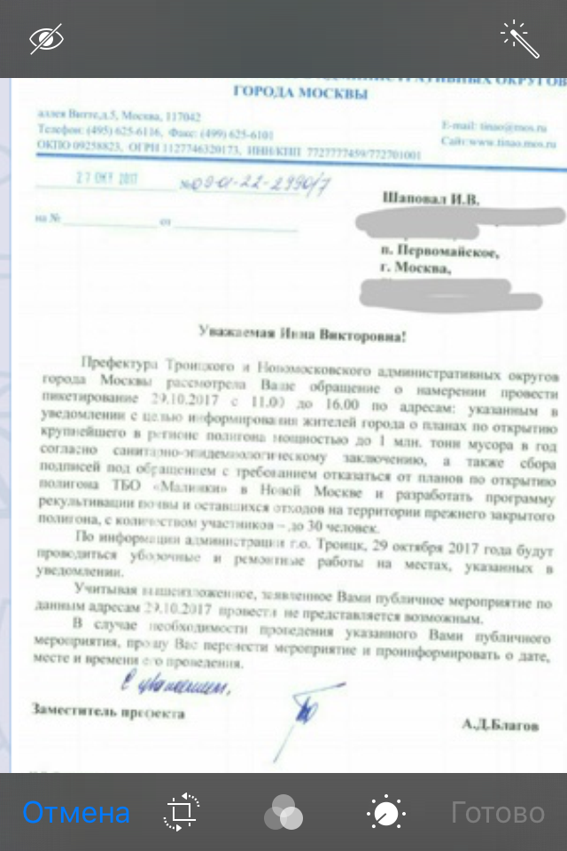 Esquire писал(а):Вот ответ департамента природопользования Правительства Москвы. Похоже на обычную отписку: их спрашивают об открытии и расширении до 67 Га полигона ТБО на 7 ближайших лет с захоронением по 1 миллиону тон мусора ежегодно, а они рассказывают о том, как сейчас хорошо рекультивируют старую свалку на 10 Га.