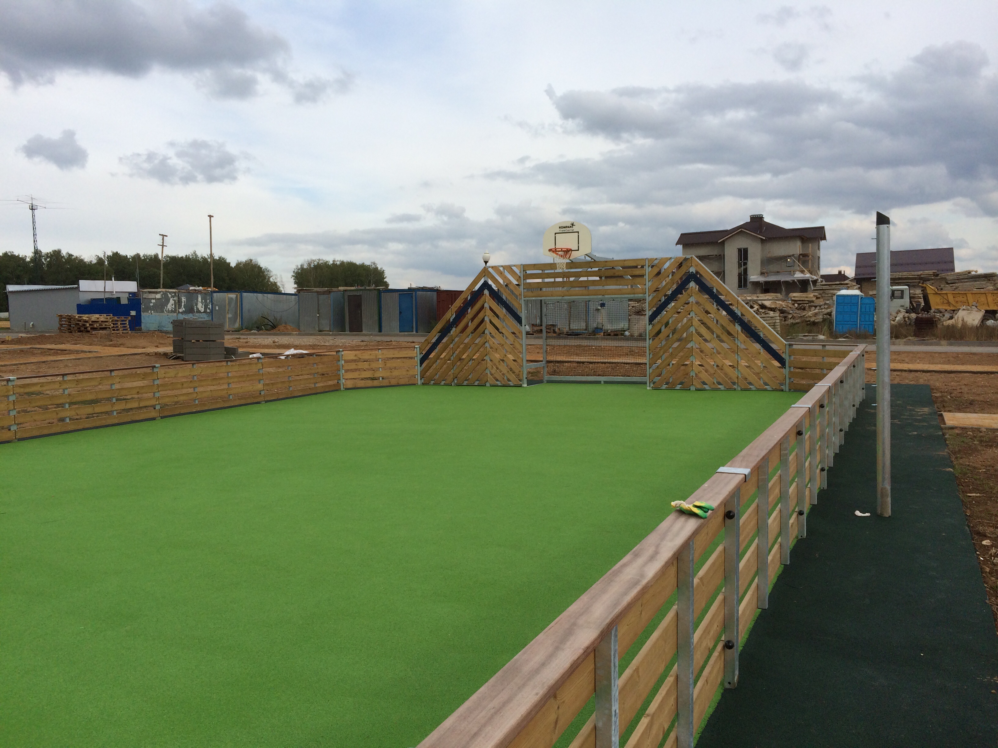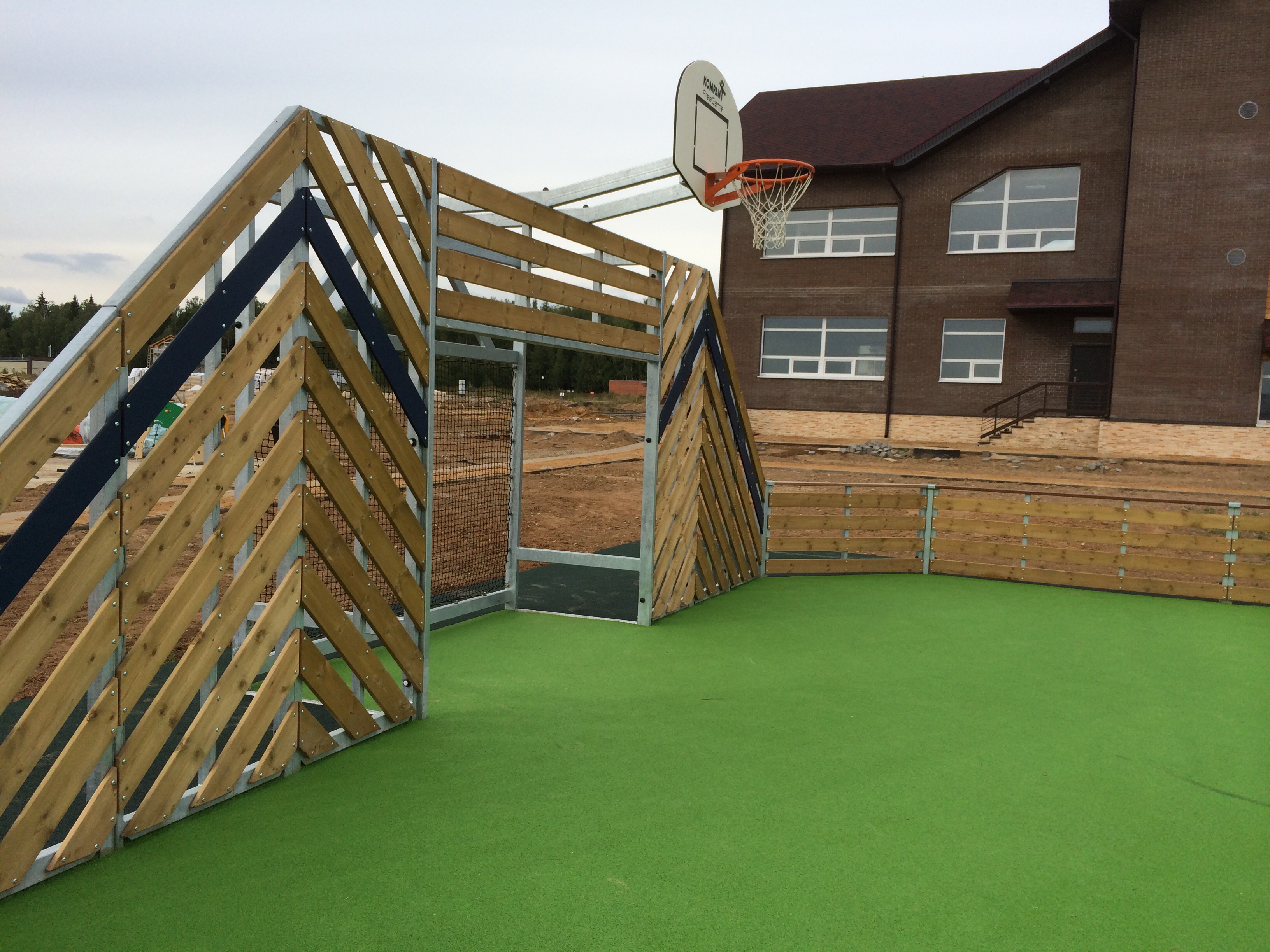 За площадку спасибо, хотя есть незначительные мелочи, которые хотелось бы устранить. Помимо отсутствия лестницы для горки (удивительно, конечно), при игре в баскетбол (чаще чем в футболе мяч летит в сторону кольца (ворот)) очень часто мяч улетает за пределы площадки через ворота. Если внимательно посмотреть, то торцевые стороны ворот без сетки, видимо для того, чтобы входить на площадку. Туда мяч и улетает постоянно. А в общем площадка хорошая )