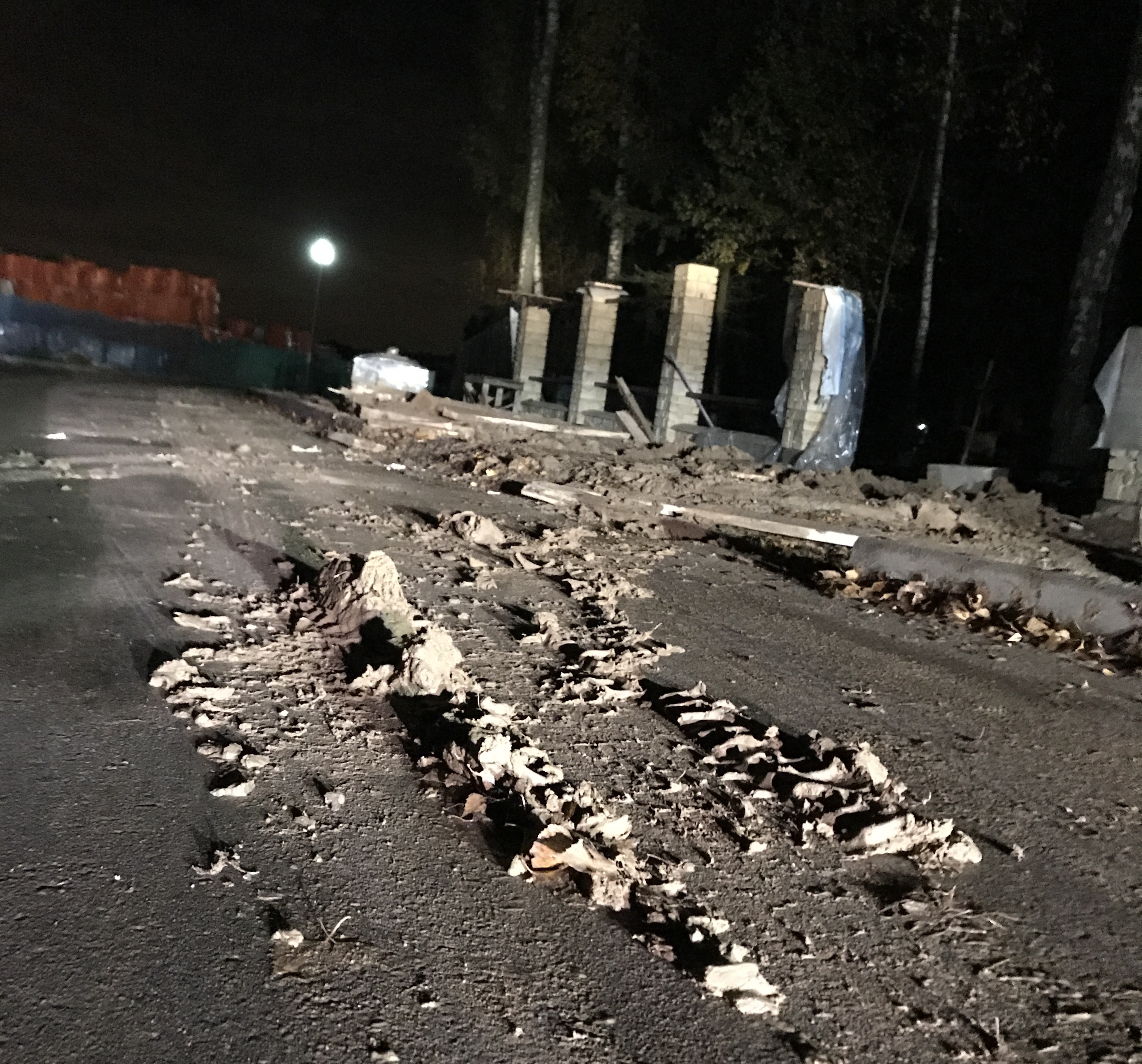 Обратите внимание, что после того как у вас на участке трактор потаскает с места на место грунт, то кучка может упасть на проезжую часть. После этого шинами колес, глина растаскивается по всей дороге, а потом тащится на парковочку вашим будущим соседям, многие из которых, уже полноценно живут в поселке. Кстати, кроме автомобилей, по этой грязной дороге прогуливаются мамы с колясками.