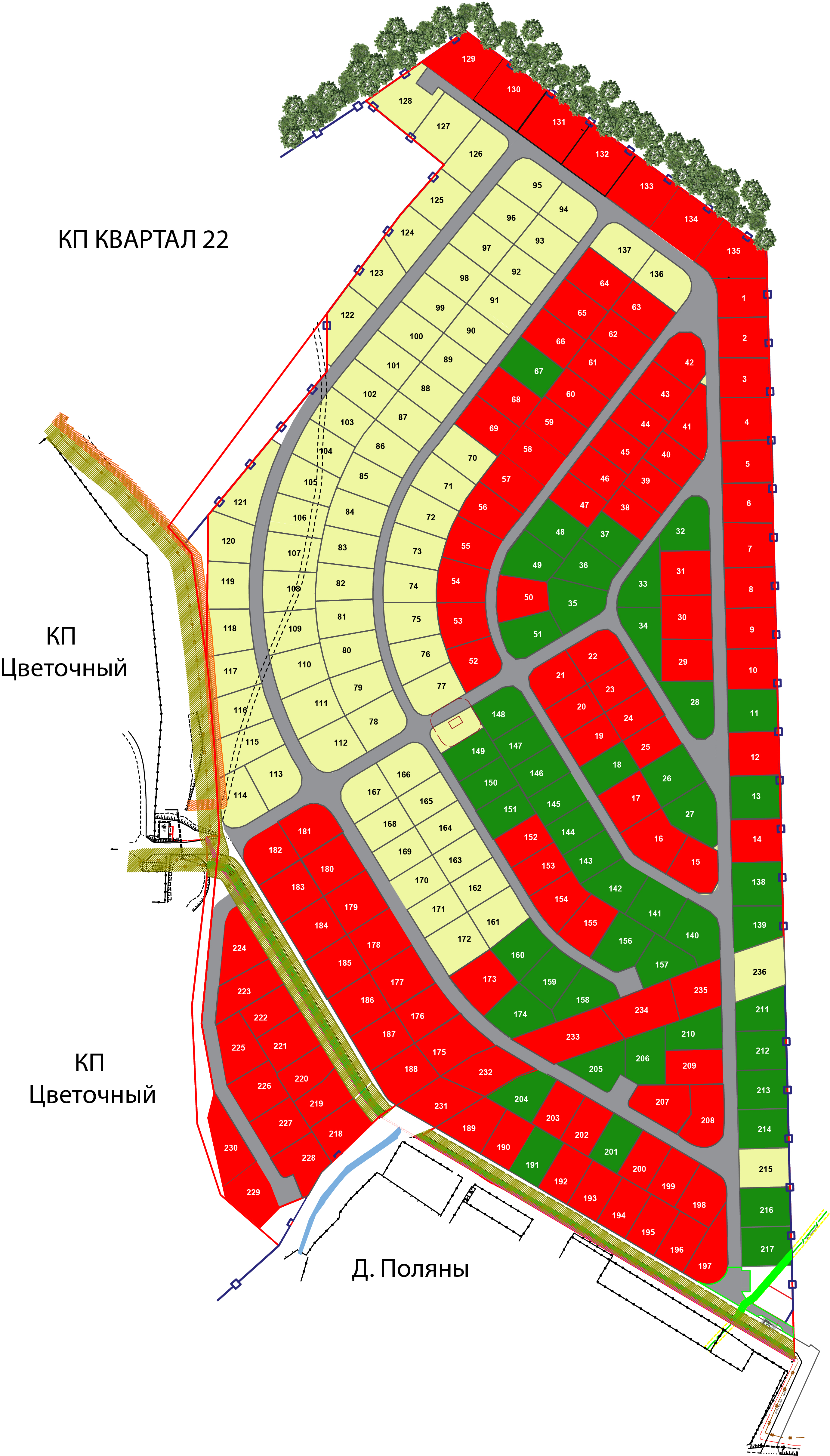 Подробный Генплан КП ЦВЕТОЧНЫЙ-2 с номерами всех участков